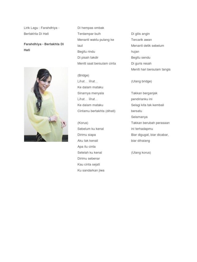 Lirik Lagu Bertahta Di Hati Farahdhiya