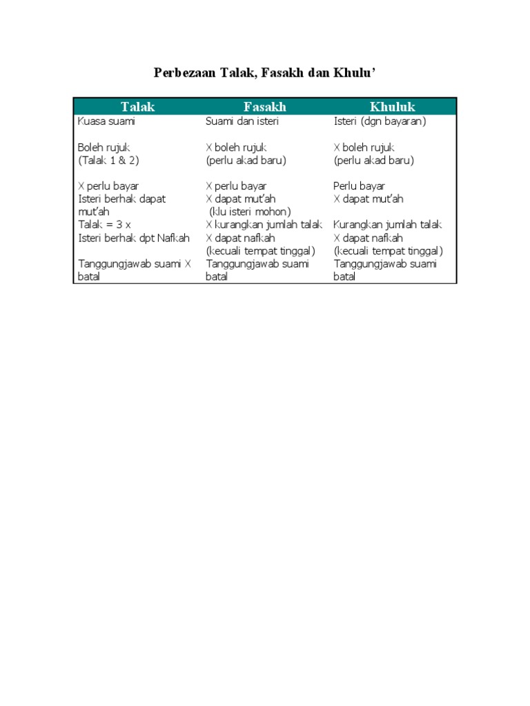 Nota Psi F5 Perbezaan Talak Fasakh Dan Khuluk Pdf