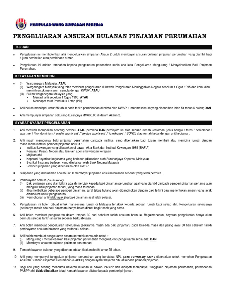 Pengeluaran Ansuran Bulanan Pinjaman Perumahan Melalui Kwsp Buletin Perancangan Kewangan Bijak Wang Dan Keusahawanan